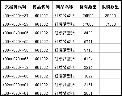 1、《红楼梦型张》于2015年2月16日挂牌上市交易。上市交易前该藏品持有人共计2504人,其中前十大持有人及持有数量如下: