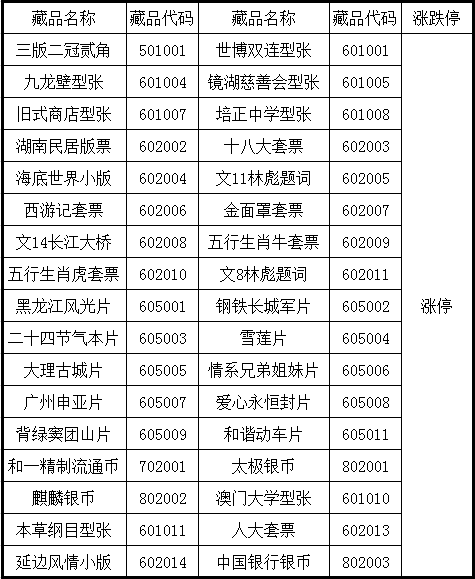 《九龙壁型张》交易藏品停牌公告