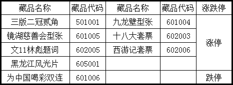 下列交易藏品于2015年4月11日、4月13日、4月14日连续三个交易日价格涨停: