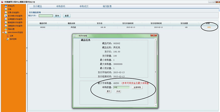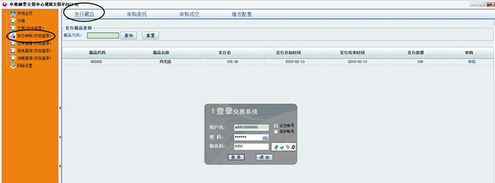 Step1、登陆客户端,点击“发行申购(双击登录)”,查看发行藏品。
