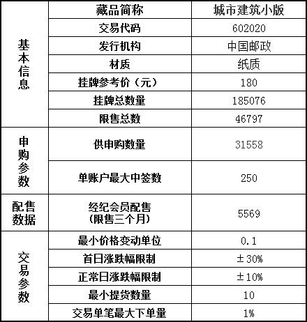 经湖南省中南邮票交易中心有限公司(以下称本中心)普通投资人会员申请,本中心审核通过,鉴定机构鉴定合格入库完毕,《城市建筑小版》准予在本中心钱币邮票线上实物交易系统正式挂牌交易,具体事项公告如下:
