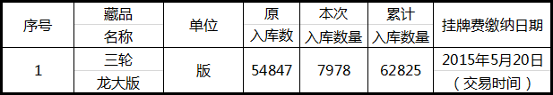 3、再托管藏品于2015年5月21日正式上线交易。