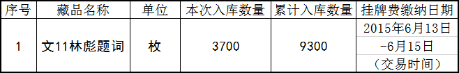 4、上述藏品缴纳完挂牌费后于2015年6月16日上市交易。