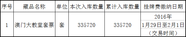 藏品《澳门大教堂套票》托管入库公告