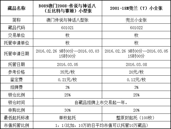 2、本次新藏品托管采取市值托管,详细请参考中心官网颁布《2015(交)第389号 关于新藏品市值托管实施办法(试行)的公告》的内容。