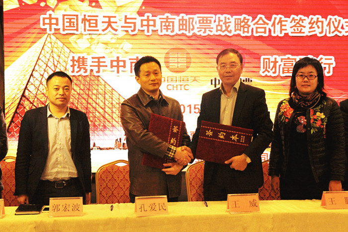 2015年3月18日上午10点18分,恒天创业投资有限公司与中南邮票交易中心战略合作签约仪式在长沙隆重举行,恒天创业投资有限公司总经理王威先生和中南邮票交易中心总经理孔爱民先生签署协议并互换文件,恒天创业在一年时间内将在中南、南京两个平台投资伍亿元,正式进军文化产业,更会在上市藏品投资、定向基金、中南邮票交易中心和南京文交所钱币邮票交易中心股权改制等方面加强合作,开启文化金融财富之行新纪元!