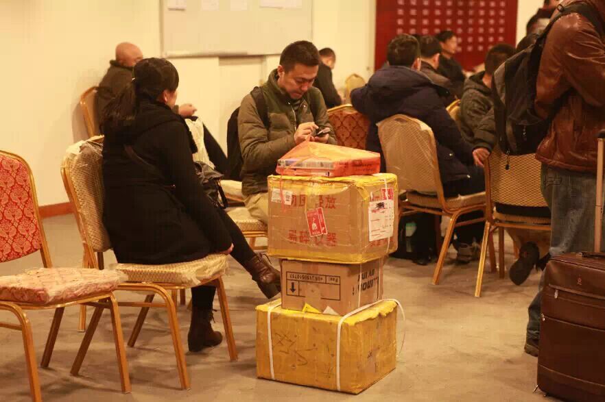 八点走进多功能会议厅,一眼望去,人头攒动,热闹非凡,尤其是托管服务台前更是围得水泄不通。穿行在人群中,看到的是一张张亲切的笑脸,热情的交谈,身旁整齐的放着用行李箱或纸箱装好的藏品,一片井然有序的和谐气氛。