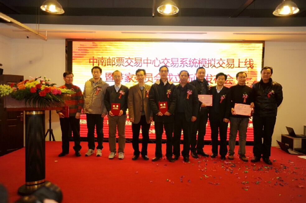 湖南日报报业集团党组副书记、总经理、联合利国文化产权交易所有限公司董事长皮林,湖南日报报业集团副总经理、联合利国文化产权交易所副董事长、湖南省中南邮票交易中心有限公司董事长杨山青,南京文化艺术产权交易所董事长周军,中南邮票交易中心总裁孔爱民等领导莅临现场并发表讲话。与会领导为专家委员会的5名专家颁发聘书。