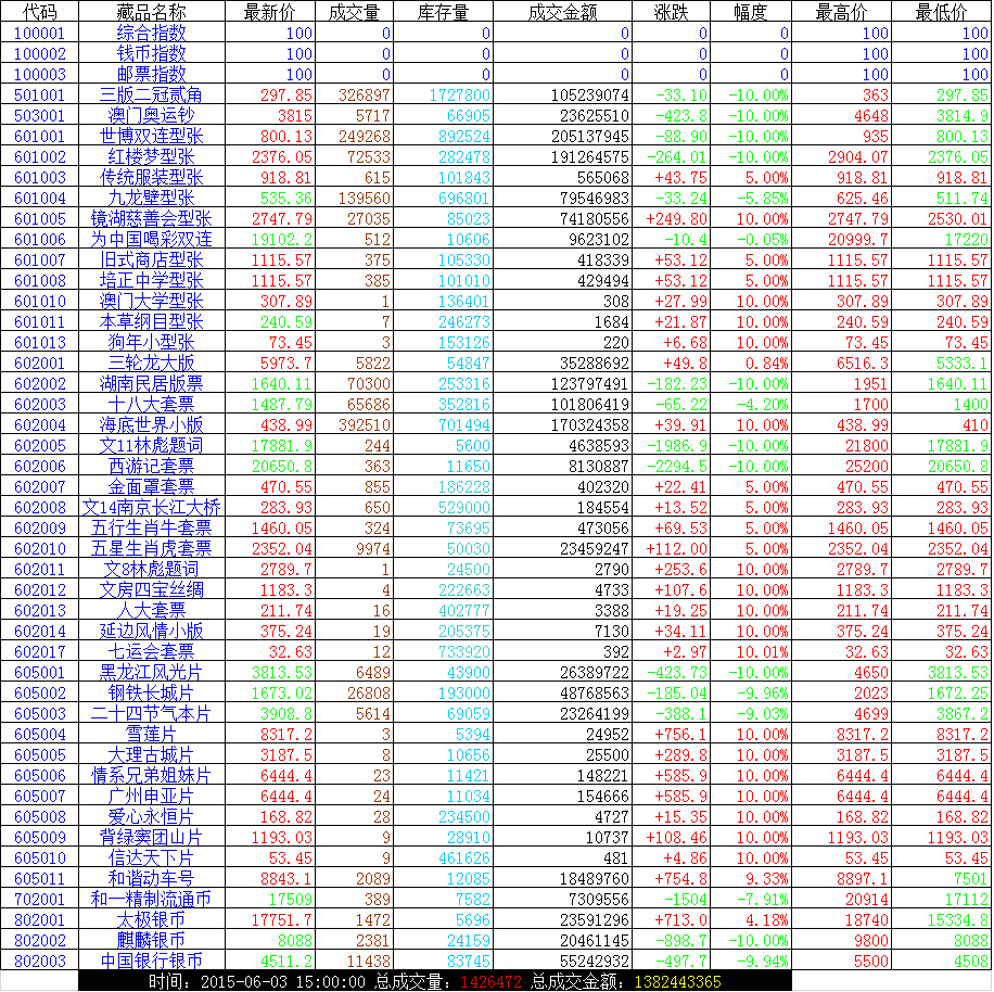 凤凰综述为中南邮交所独家专栏,主要以中南邮票交易中心线上实物交易行情为基础,简述当日交易实况,力求观点客观,公正,为投资者和集藏爱好者提供参考。但文中包含的信息及观点建议仅限参考,由于水平有限,投资者会员作出的任何投资决策与作者无关。