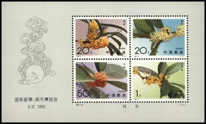 1995年9月14日-18日,由中国集邮总公司和中国金币总公司联合举办的“国际邮票、钱币博览会 北京 1995”在北京中国国际贸易中心举行。这是新中国成立以来首次举办的集邮票和钱币、展览与销售于一体的大型邮票钱币博览会。这次博览会参展的有美国、澳大利亚、俄罗斯、瑞士、日本、奥地利、英国、加拿大、德国、西班牙、新加坡、南非、安道尔、香港等40多个国家和地区的造币厂及经销商,并同时展销他们最新纪念币章。德国、朝鲜、蒙古、越南、匈牙利、古巴、汤加等国为此发行邮票、纪念币或举办专题邮展。为庆贺这次国际邮票、钱币博览会在中国北京举行,我国邮电部于9月14日发行一枚以“桂花”邮票为主图的《国际邮票、钱币博览会北京1995》纪念小全张,面值1.9元,售价3元。