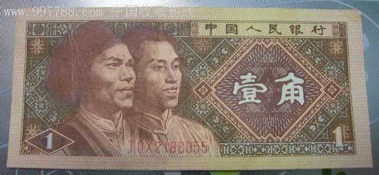 “这就是现在钱币市场开始追捧炒作的"荧光钞"的名称,都是根据人民币放在荧光灯下出现的图案命名的。”5月24日,乌鲁木齐市集邮收藏品市场一位姓袁的币商介绍说,比如第四套人民币中有一个版别的一角钱,在荧光灯下会放射出像晴空万里的碧蓝天空,光芒耀眼的白色银光,所以叫青天白日,这样一张一角纸币在专业钱币论坛报价20元。