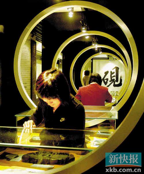 梁金陵二十多方老坑端砚作品在上海展出。CFP供图(资料图片) 估计涨势还将持续至少十年,业内出现回购热潮