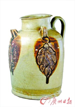 长沙窑瓷器中,除釉下彩绘外,还采用模英贴花等手法装饰器物,也就是将纹样贴在器物的腹部,并涂以褐色彩斑烧成。