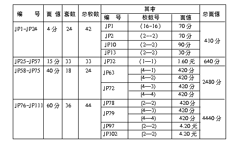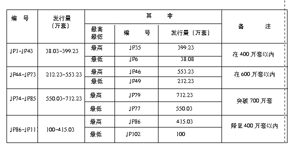 JP片发行量对照表 表2