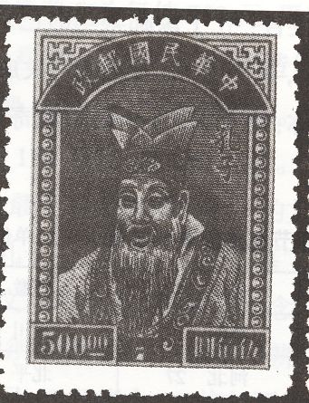 抗日战争胜利后,国民政府根据教育部的申请,将每年的孔子诞辰日定为民国教师节,并在1947年发行邮票以志纪念,分别以孔子头像、孔子当年讲学的杏坛、孔子墓——至圣墓和孔庙中的大成殿为主图。其中,第一枚孔像邮票尤其受到邮政部门官员的重视。据说,当年的邮票设计者在绘制第一稿孔像时,最先选中的素材是唐代著名画家吴道子的一幅孔子画像。吴道子那可是唐朝鼎鼎大名的“人物画第一高手”,有“画圣”的美誉。出自他之手的孔子画像的真迹在历史上早已失传,但其仿画则一直到民国时期仍广为流传,当时的很多书坊里都有卖,群众基础那是没的说。
