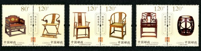 中国邮政先后于2011年发行2011-15《明清家具——坐具》(以下简称“坐具”)特种邮票1套6,枚、2012年发行2012—12《明清家具一一承具》(以下简称“承具”)特种邮票1套4枚。这两套以表现“明清家具”为主题的系列邮票,具有诸多异同。一经发行,便引起了集邮爱好者们的广泛关注和极大兴趣。笔者拋砖引玉,将这两套邮票的异同整理成文,以期与广大邮友共问切磋。