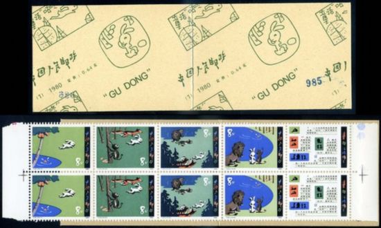 其中,1980年6月1日发行的《童话-“咕咚”》邮票,如今其小本票的最新市场价在6000元左右,是其面值的9375倍。
