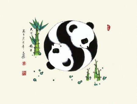 大熊猫黑白二色的外表,色彩反差极强,黑白布局巧妙,简直就是一幅玄妙的黑白太极图