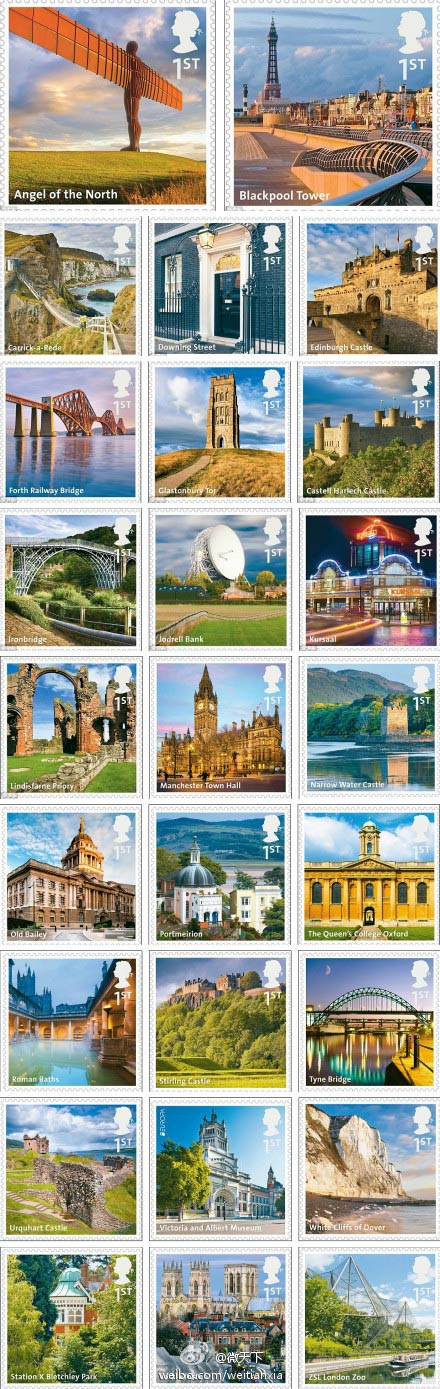 英国皇家邮政今天发售了首套英国景点“A 至 Z”字母系列邮票中“M至Z”部分。字母“X”邮票上的建筑物是英国二战期间破译恩尼格玛密码的布莱切利庄园。英国旅游及遗产大臣约翰-潘罗斯称,皇家邮政发行的该系列邮票是对英国著名观光者胜地的最好纪念。