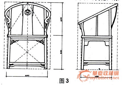举黄花梨圈椅(图1)为例。一大曲率的椅圈轮廓,突出地成为这件家具造型的主调,构成这件家具的特征。其它构件都与之呼应,烘托了这一主题。作为此椅视觉中心的靠背上如意团花的形象和设置,更起到提神的作用。以团花为中心,又把靠背两旁站牙头,前椅腿上端的角牙花,以及椅座左、右、后面牙板等都统一起来。这组小曲率曲线装饰部件又与主圈,靠背等大曲率部件相呼应,起到井然有序烘托作用。可以毫不夸张地说,这件圈椅是一部以圆为主旋律的优美乐意。把极为丰富的变化,纳入高度和谐统一之中。