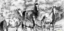 蔡长奎可以说是用油画的理念、西画的造型和国画的笔墨来画马。他1976年毕业于天津美院油画系,曾长期从事油画创作与博物馆陈列设计工作,这些为他日后的国画创作打下坚实的基础。蔡长奎画马很少画单马,尤擅画群马,设色不多,全凭笔墨把群马画得神采各异;在构图上虽群马相聚,但倚让重叠丝毫不乱。如获奖的《奔马》,就是15匹马在一起飞奔,远近浓淡匹匹精彩,人驻足观之,如闻马嘶犹听马蹄得得。