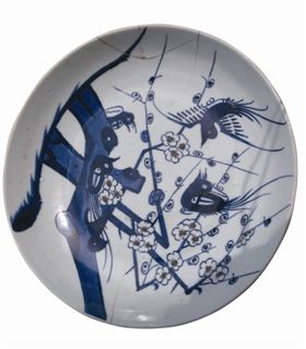 这只锔过钉的乾隆青花釉里红喜鹊登梅纹盘,纹饰寓意美好,“锔瓷”工艺精湛。此外,该盘口径之大并不多见,当属一件很有特色的收藏佳器。