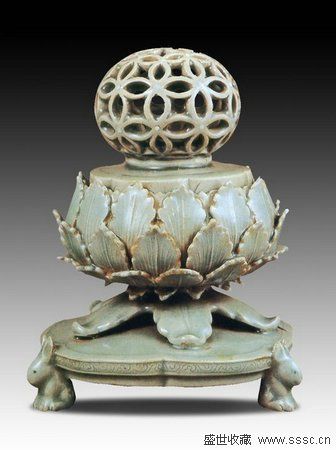 青瓷透雕七宝香炉 12世纪 通高15.3厘米首尔国立中央博物馆藏