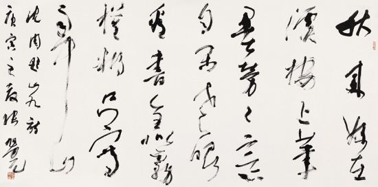 作为书法家的张旭光,首先是一个有思想的艺术家。十年前他提出:“真正的艺术创作应该是理性高原上的非理性驰骋。理性的高原越广厚,非理性的驰骋越恣肆。”近年他又提出:“以现代审美意识重新开掘传统,开掘出现代审美的洪流。使我们的创作,既从传统长河的源头而来,又能站在时代潮头之上。”他的思想影响了当代书坛的创作。