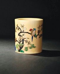 清代康、雍、乾三朝皇帝皆酷爱艺术,并身体力行,参予创作。在宫中所设置的27各作坊中,就有专门制作象牙物件的作坊,主持者俱为行家里手,广搜人才,精益求精,不断将其他雕刻、镶嵌手法融于牙雕,甚至不惜工本,采用各种珍稀名贵材质,使牙雕艺术进入鼎盛阶段,其制作水平,达于登峰造极之境。