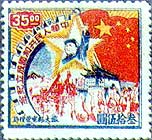 1974年10月1日发行了《中华人民共和国成立二十五周年》纪念邮票两组:第一组J.2全套1枚,图案为国徽和各族人民;第二组J.3全套3枚,横联印,图案分别为“工业学大庆”、“农业学大寨”、“神圣领土不容侵犯”,从中不难看出文化大革命的影子。