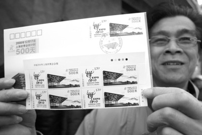 2008年12月17日上午,由上海世博会事务协调局和上海市邮政公司联合举办的 “中国2010年上海世博会倒计时500天邮票首发式”在上海邮政大楼开幕。市邮政公司门前再次排起“长龙”。据市邮政公司介绍,本次发售的《世博会》首日封和 《上海世博会倒计时500天》纪念封,分别限售150枚和1000枚。